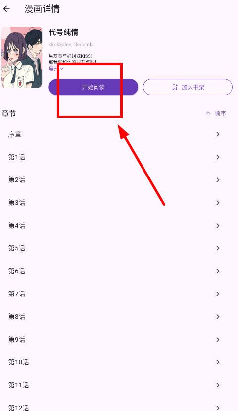 6、点击感兴趣的漫画,选择开始阅读;