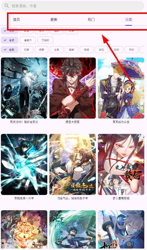 4、点击上方的分类可以精准检索想看的漫画类型;