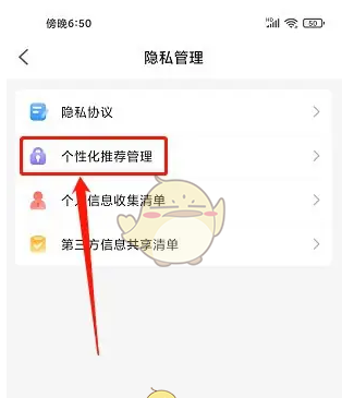 进入个性化推荐管理界面,点击【内容个性化推荐】右侧按钮关闭。
