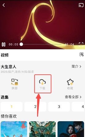2、进入播放页面点击下载按钮。