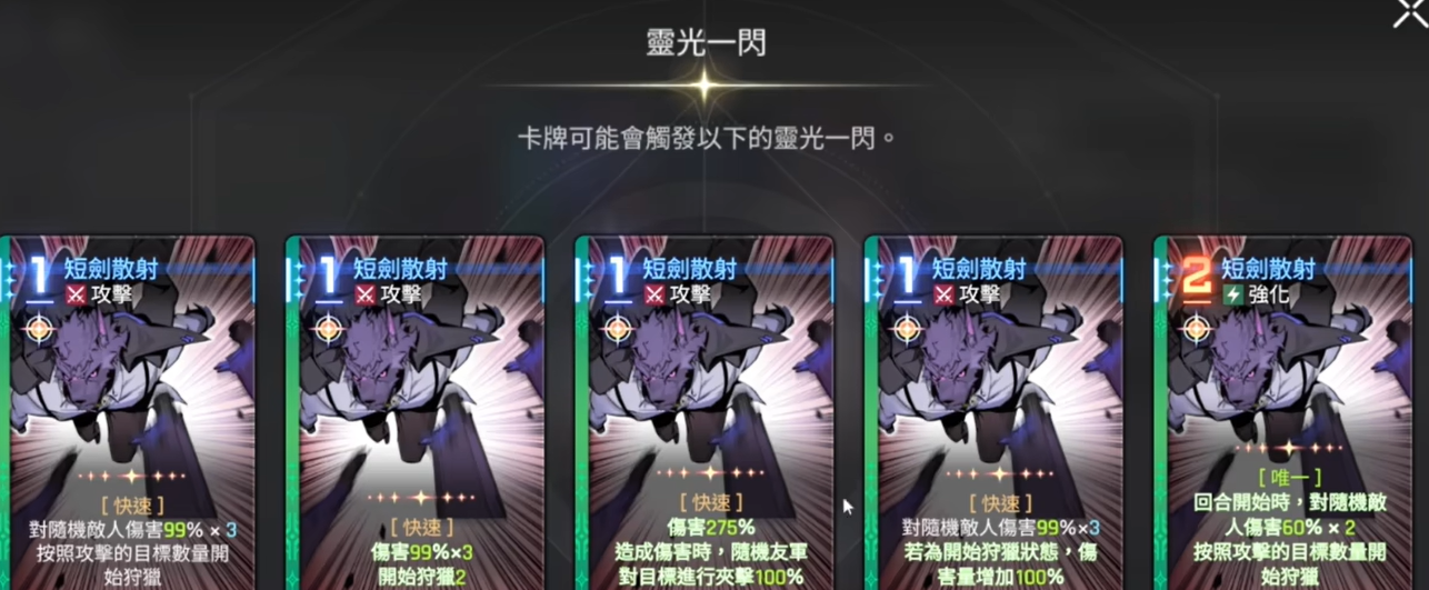 如果战斗时使用单体攻击卡,那么还能够拥有更高的伤害,追加敌人时可实现快速的移动,提高追加伤害的效率。如果队友们使用的是非攻击类卡牌角色,还能够再增加一层伤害,每层增加的伤害为30%叠加5层伤害后将会给敌人造成负面性的伤害,这一技能造成的额外和主要伤害是无人可敌的,可在多个角色中占据更多优势。
