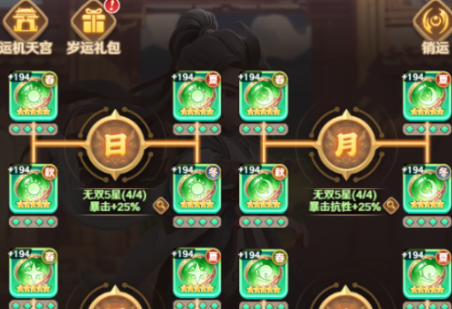 天宫一共分为四个,分别是:日宫、月宫、星阁、海苑。每个区域掉落的岁运部位不同,需要玩家按需去逐步收集同一套或者同一系的部件。每个套装还有春夏秋冬四种季节类型,只有凑齐相同品质、季节的四件套才能激活完整的属性。