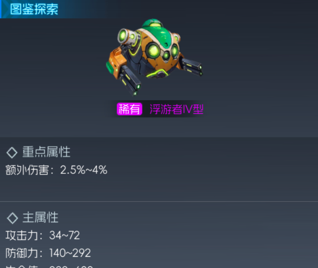 第三位浮游者4型,非常强劲的一款增伤型宠物,不依赖于运气完成暴击触发,主打稳定持久,对于很多务实型玩家尤为适配,不仅能够为角色提供成比例固定的伤害加成,无论在你能否触发暴击的条件下,都可开启全额增伤福利,这一点还是非常神的,而且这种稳定的属性加成,在一些持久拉锯战当中,可谓是增伤利器。