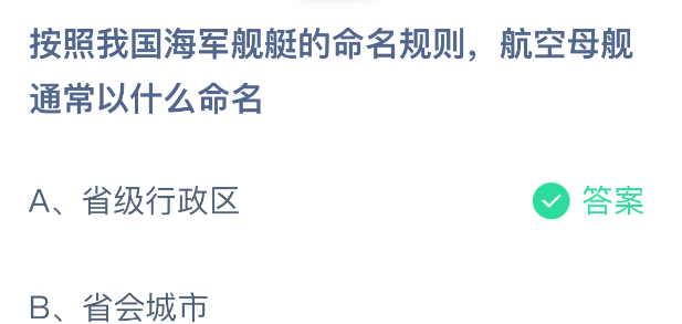 以上就是按照我国海军舰艇的命名规则,航空母舰通常以什么命名,支付宝蚂蚁庄园2025年12月9日答案最新,更多精彩内容,请点击关注更新!