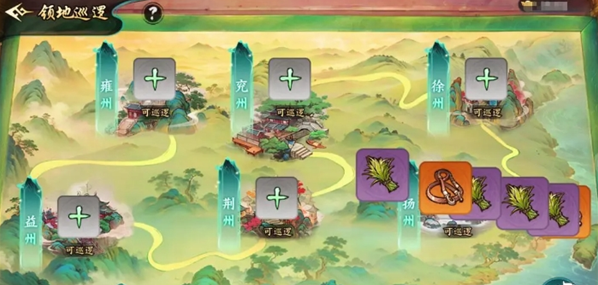7)领地巡逻,每12小时收取1次,随机获得道具(包括点将令),并且可直接获得巡逻将领的碎片,上阵主将快速获得碎片的方式之一。