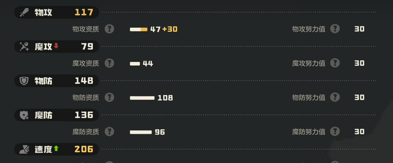 种族值方面咔咔鸟的双攻确实不算高,但是耐久很不错。生命值150,防御108,魔抗96,这样的三围数值让它能扛住不少伤害。速度种族也很快,这点对于咔咔鸟来说相当重要。毕竟它需要先手才能触发连击加成,速度慢了就发挥不出应有的实力。努力值的加点推荐往生命、防御、速度这三项加,这样能最大程度提升生存能力。加满之后生命值能到374左右,防御能力也会明显提升。