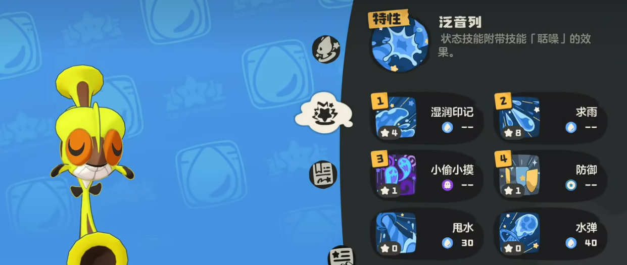 技能搭配方面咔咔鸟的选择挺多的。有能加威力的技能,也有消耗对方能量的技能,还有多段攻击类型的技能。多段攻击用起来效果不错,不过比较吃能量。如果要打PVP想打出高爆发,可以考虑配一只圆号鱼,用湿润印记来减少能量消耗。因为咔咔鸟有些技能需要十点能量,消耗确实有点大。