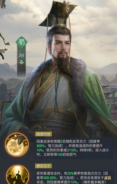 如果大家想要用比较具有代表性的角色,其实这里大家还可以尝试的有刘备,虽然这里的刘备是作为一个辅助定位上面的角色玩,但是根据团队的效果来看的话上面的治疗以及伤害增益其实可以用的机会也不少,而且还有部分固定的阵容是一定会用到刘备的,比如说桃园阵容当中一般刘备都是必用的,在其中搭配出来的常规阵容也比较多。