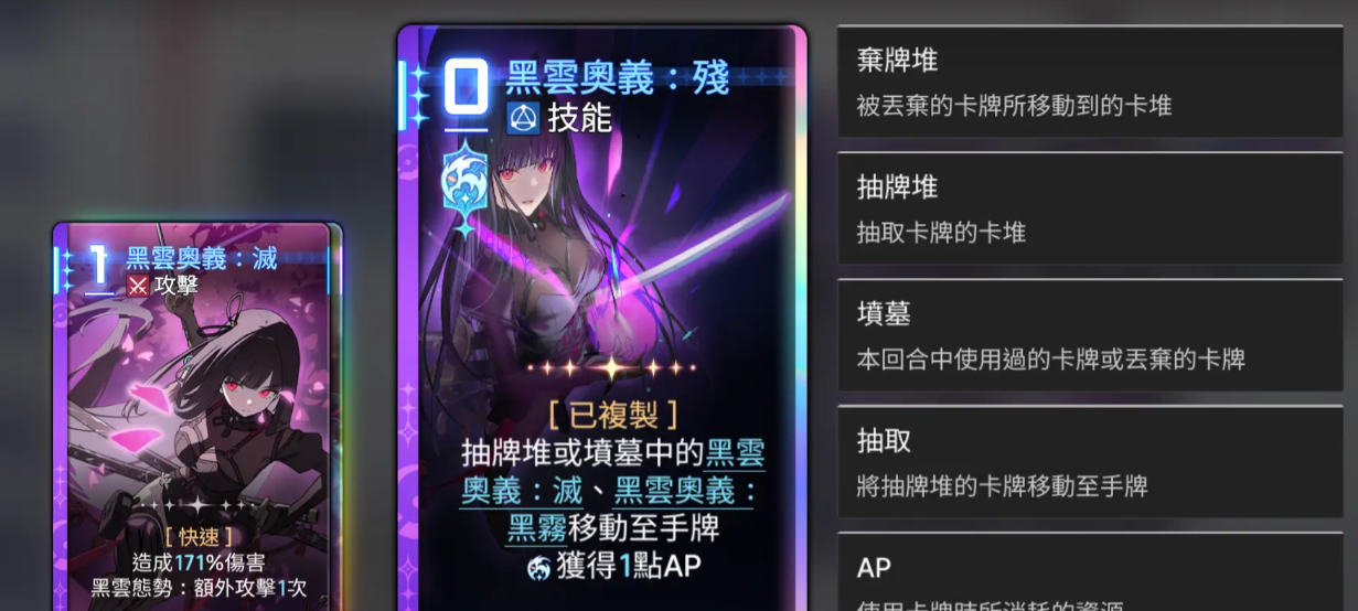 后期大家再使用琳在卡牌当中的灭效果的时候,其实在回合里面可以根据目前所有的卡牌一批来建议,然后所有的卡牌根据这样效果的话,在费用上面的要求就不高,就算是在0费的情况下,利用琳她这样的卡组搭配,也可以打出来一套攻击,如果大家有神闪卡的话,那么在这里打出来一套之后,同样是消耗AP,所以琳目前在费用上面如果玩好机制的话是不太高的,如果要删掉卡牌的话,建议大家直接把盾牌给删掉,这样的话就替换成一个2费的攻击卡。