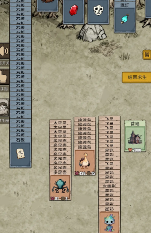并在夜晚使用诡怪战斗,战斗胜利获得物资,失败则减少营地生命值,营地生命值归零游戏失败,未被攻破的情况下存活五十天后获得游戏胜利。