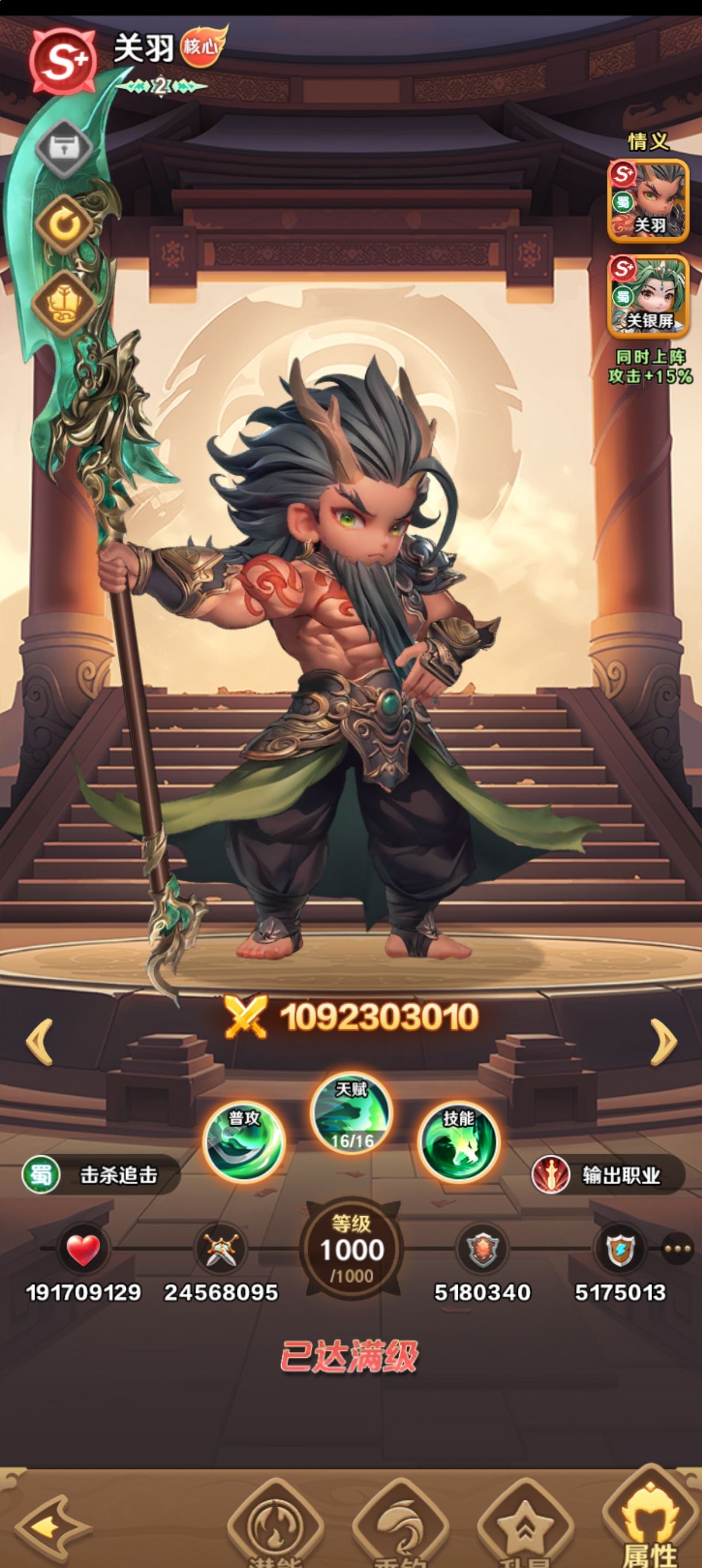 玩家可以尝试选择关羽,他其实作为高风险高回报的输出类型的角色,他的普通攻击技能跟主动技能可以借助血量的丢失来换取较好的伤害,一旦他的天赋技能得到培养之后,他其实还能够实现单体伤害,目前关羽作为蜀国阵容里面的核心输出是值得选择的。