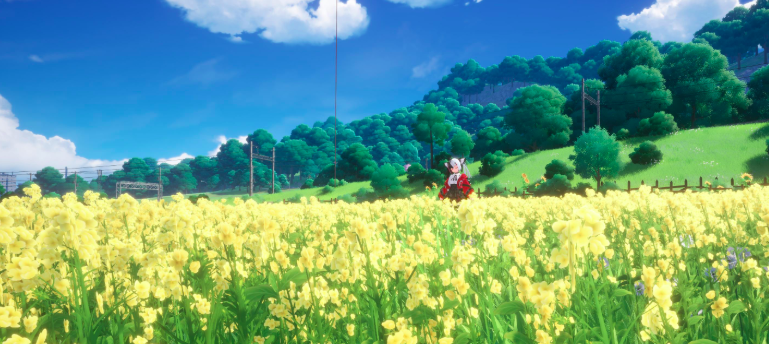 不过需要提醒玩家的是,要想进入这片花海区域,需要完成主线任务第三章当中的锈色回响,在铁轨的起点处与流浪诗人阿莱克斯进行对话,完成阿莱克斯的锈轨上的萤火这一任务,才能够成功激活该位点。
