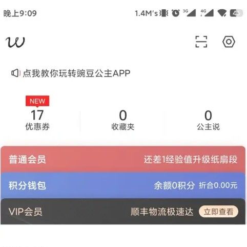 在豌豆公主app“我的”界面右上角找到设置图标,点击后进入设置界面。