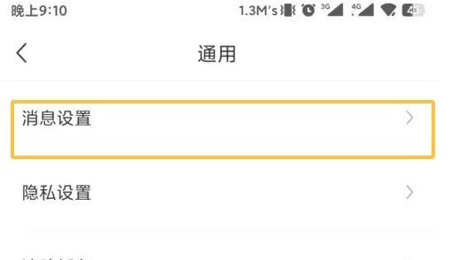 在通用设置界面中找到消息设置选项,点击后进入消息设置界面。