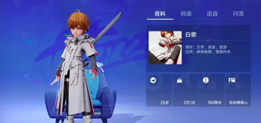 白歌这个角色手持一柄长剑,而他的喜好则是文学、美食和旅行,每一次抗击都尽显侠客风范,同时身上还散发着一种文艺气息,不愧是李白为原型的衍生体。