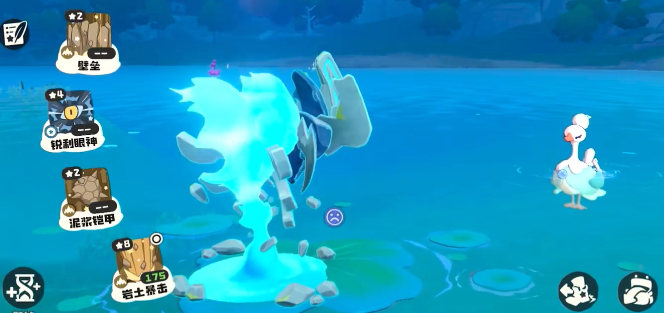 巨灵石一共有三个技能可以使用。第一个技能叫扔泥巴,这是个单体攻击招式,伤害倍率能达到120%,打起来还算疼。第二个技能是超声波,这个技能比较特殊,它属于范围攻击,可以同时打到多个敌人,虽然单个目标的伤害只有70%,但是胜在能群攻,而且还自带穿透效果,打那些防御高的敌人特别好用。第三个技能烟雾弥散就更厉害了,这是巨灵石的大招,释放的时候巨灵石会进入霸体状态,不会被打断,被这招命中的敌人会陷入失明,失明期间啥技能都放不出来,相当于暂时失去战斗能力。