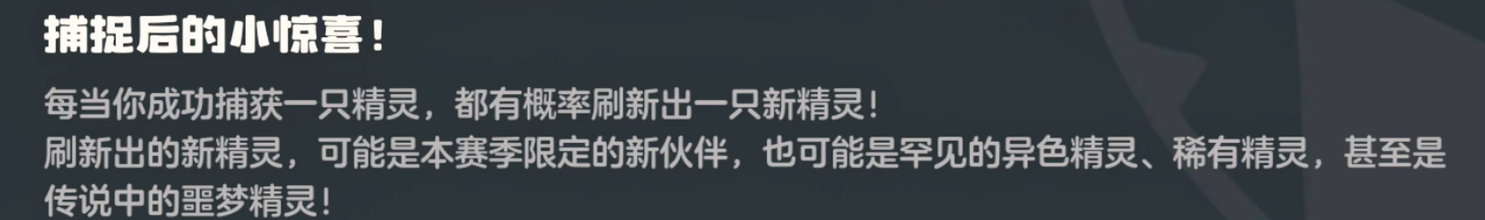 污染精灵还有个特殊机制,就是有时候把污染状态打掉之后,出来的可能是普通精灵而不是异色。打完之后看着状态很好,也没有冒黑光,但仔细一看颜色跟普通的一模一样,这就是抓到普通版本了。真正的异色是在非污染状态下,颜色跟正常版本明显不同的那种。至于有没有污染异色同时存在的情况,目前还没确认过。