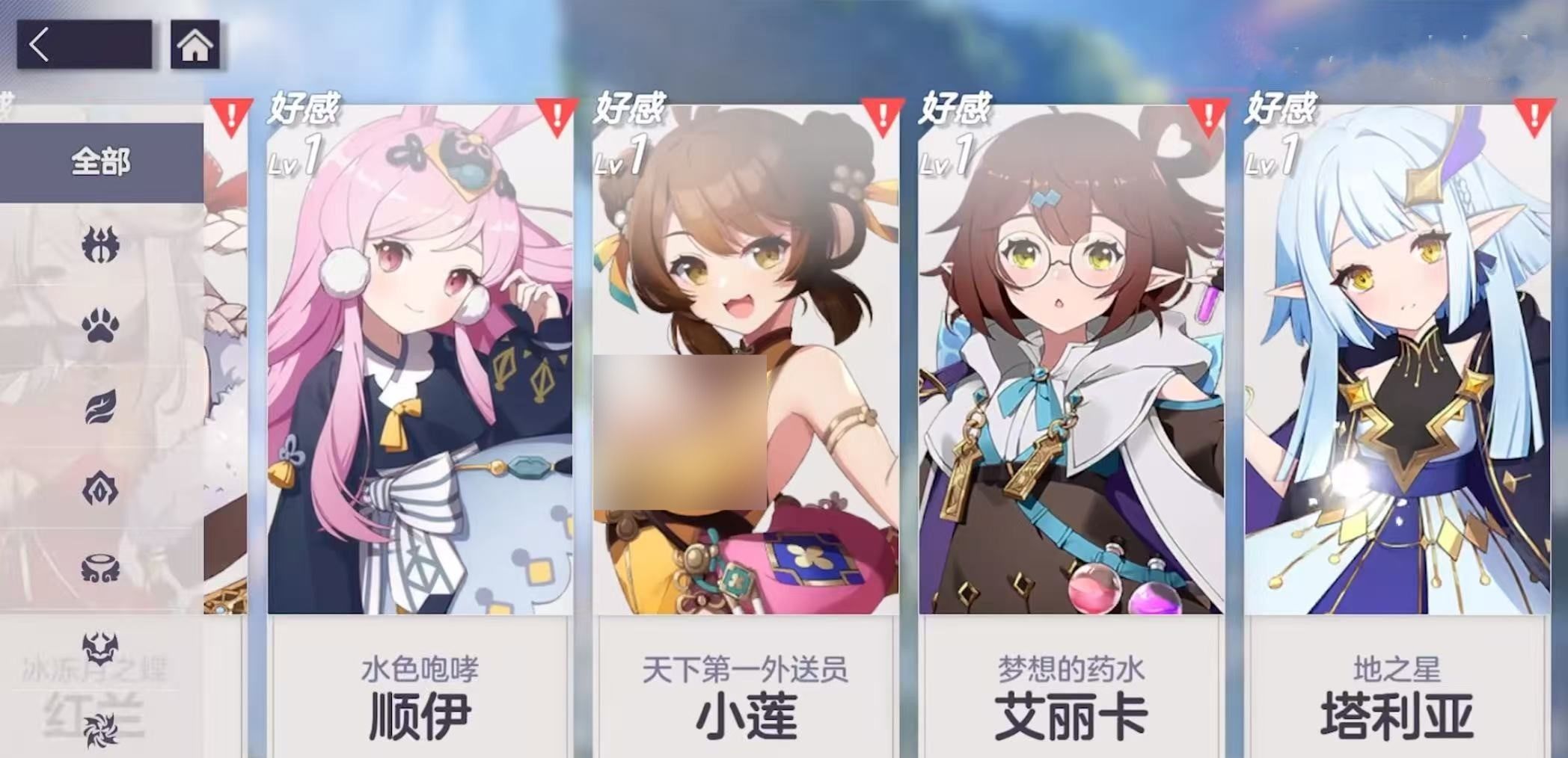 所有可收集、可培养的精灵角色均为女性形象,涵盖多种美术风格——包括但不限于清冷系、元气系、古典系与幻想系等,总计超过30位拥有完整背景设定与语音演出的角色。每位精灵均通过卡池抽取或主线剧情节点逐步解锁,部分稀有角色需完成特定条件方可获得。