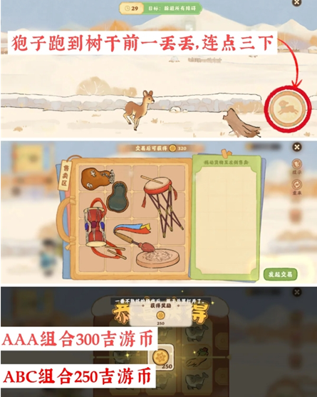 桃源深处有人家「淞雪兆吉」活动进入第三天,今日场景中新增四个小萝卜人等待寻找。同时,老虎机小游戏需尽量转到三个相同图案以获得最高代币奖励。