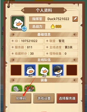 2、在头像中找到兑换码按钮