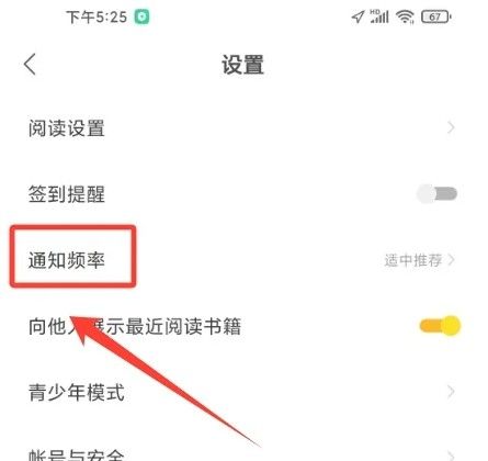进入到速读免费小说app设置页面,点击【通知频率】。