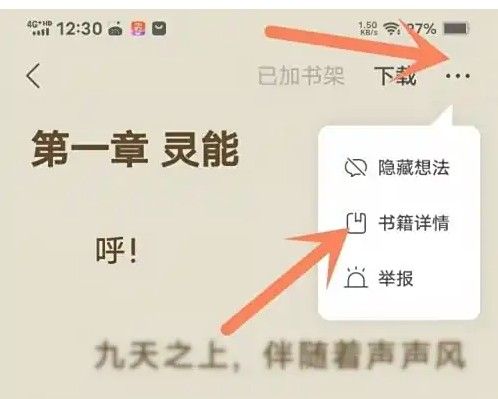 打开桌面上的速读免费小说APP进入书籍阅读页面,点击书籍详情。