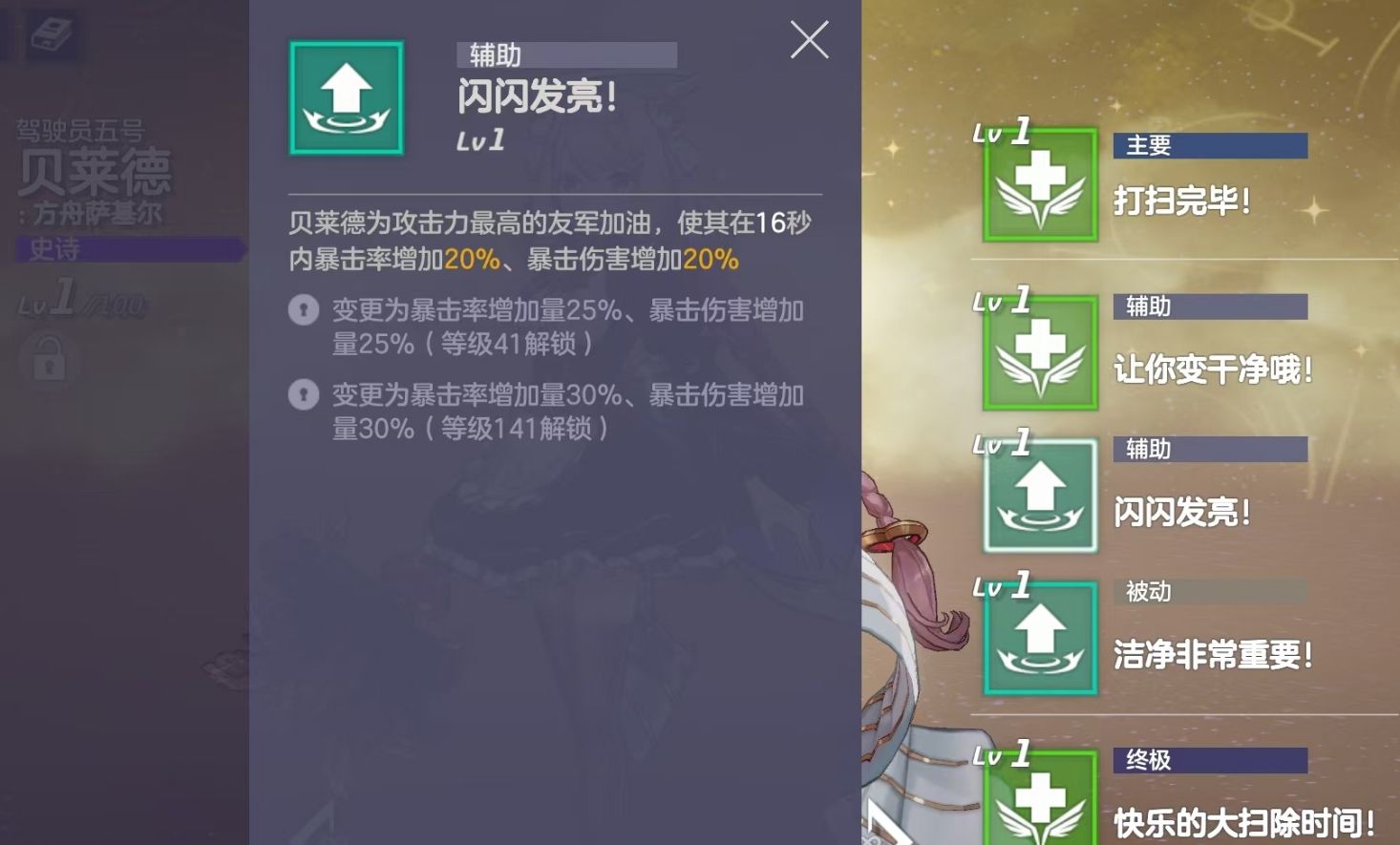 强悍的加双暴能力也令贝莱德成为了玩家在新手无限十连池里最佳的选择,而且她会指定向己方攻击力最高的角色释放,因此能将双暴增益百分百加到主C身上,再加上双暴又是所有主C非常需要的属性,也令贝莱德能与所有主C搭配作战。而且游戏又会在加速成长任务里送给玩家四个角色自选箱,玩家只需在里边选择达芙妮(前排)、梅菲斯托佩莱斯(法伤大C)、乙叶(收割)、梅尔菲斯(召唤C),就能组成一套很完整的开荒队来对应前期的战斗。