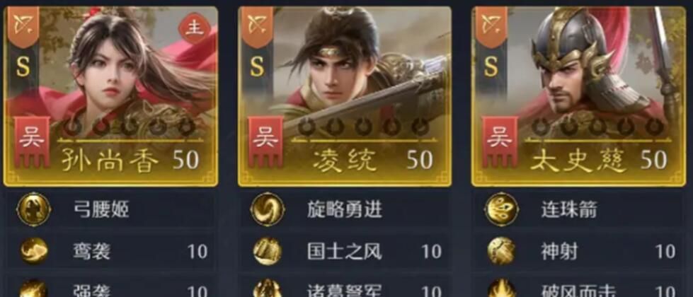 玩家在利用孙尚香搭配阵容的时候,额外借助了凌统的增益跟太史慈的负面加持。在这样的情况下,孙尚香就能够通过多次触发软席,这样的话就能够打出比较稳定的战损差,此时还能够实现建筑加成,对于玩家来说,在搭配这个阵容的时候,此时这三名武将都应该是弓兵s级的适配,这样的话才能够产生更大的价值。