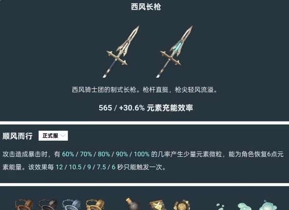 匣里灭辰(精通)、西风枪(充能拐)、虹的行迹(防御);