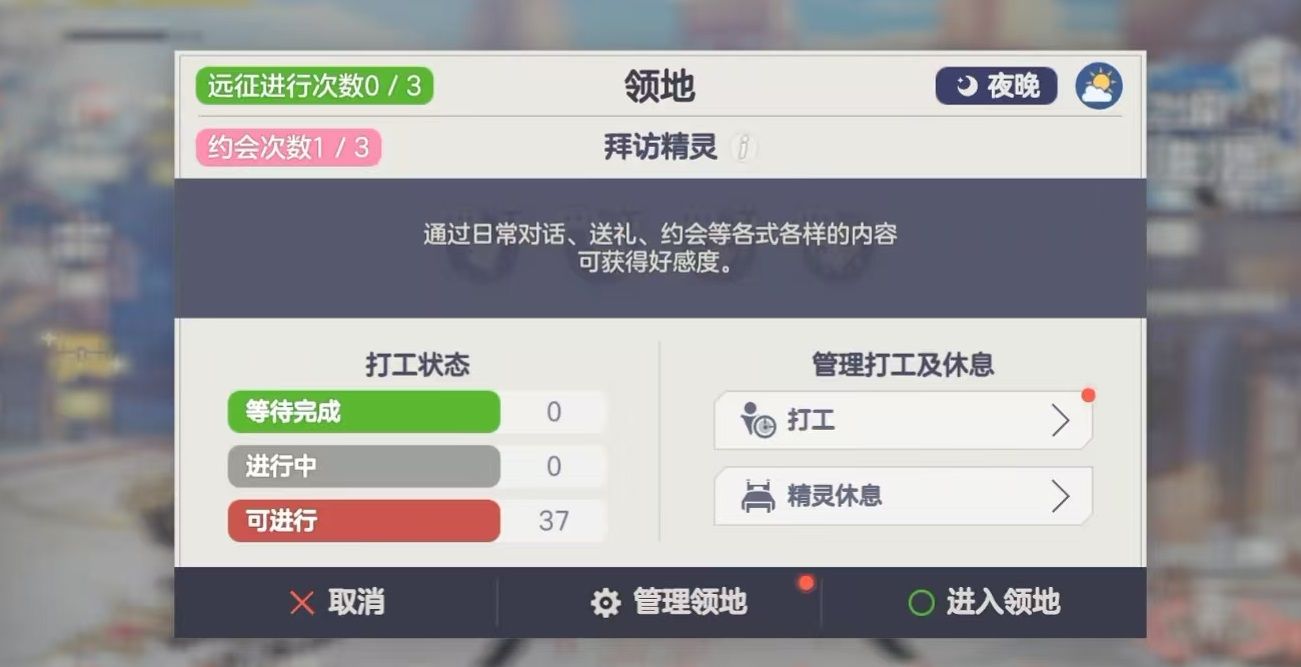 精灵打工可以稳定产出领地币,在领地商店中兑换限定外观、技能书或者是突破石等实用道具。有一部分打工岗位还可以产出抽奖扭蛋,这是获取精灵专属好感道具的核心常规途径,所以能够拿到扭蛋的收益,是打工的最佳选择,建议优先给精灵分配能够产出扭蛋的打工岗位,这样既可以完成日常打工,还可以顺带收集好感道具,加快精灵好感度的养成。不同打工岗位会出现相应的奖励,但是要注意,这些出现的奖励指的是白天打工的基础值,在夜晚打工获取的领地币为两倍。