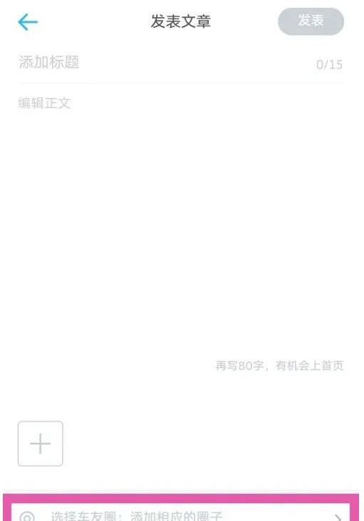 打开发表文章界面,选择发布的圈子。