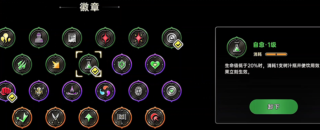 首先大家进入游戏就会看到自己选择的英雄除了基础自带的能力之外,还有5个护符可用,以及多余的槽位也可以装备起来,其中的力量护符通过普攻触发足够的buff数值,而敏捷护buff,感知护符通过技能触发buff,体制护符通过受击触发buff,而且根据护符种类的区别,这里触发的效果也是不太一样的,除此之外,击败boss后会掉落独特的buff奖励,所以前期玩家就可以以这5个护符为基础,在后期参与完每一个小图之后上面还会随机掉落道具或者是树牙之类的材料奖励。