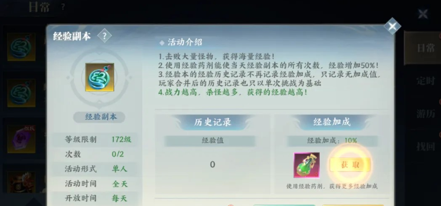 副本当中提升了单次的收益之后,大家在整体的通关效率上面就会更快,在进入副本之前,其实小编比较推荐大家用一些经验药剂之类的道具,可以给大家带来的经验加成会更多一些,而且增益效果覆盖的时间基本都是在当日全部的时间当中,所以在前期大家使用经验副本次数比较多的时候,尽量就先将这些双倍经验药剂给用掉,那样在自己的经验获取稳定速度上面也会有一半的提升效果,那么后期在养成上面,比较大家推荐大家去玩的是多人副本。