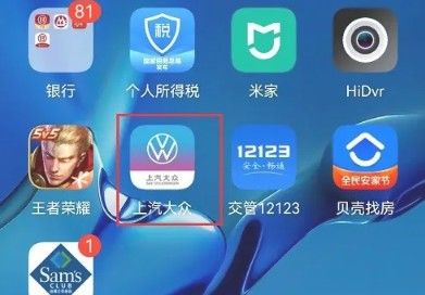 打开手机,然后点击桌面的上汽大众app