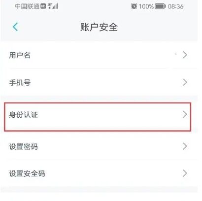 进去账户安全之后,然后点击身份认证