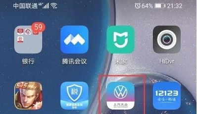打开我们的手机,然后点击桌面的上汽大众