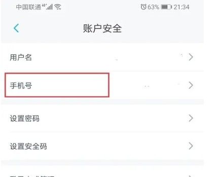 进去账户安全之后,然后点击手机号