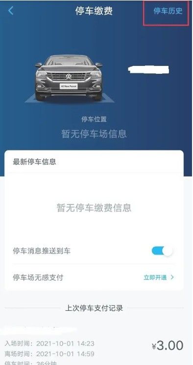 进去停车缴费界面之后,然后点击停车历史