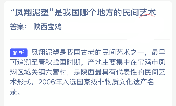 以上就是“凤翔泥塑”是我国哪个地方的民间艺术?支付宝蚂蚁新村最新答案2025年12月19日,更多精彩内容,请点击关注更新!