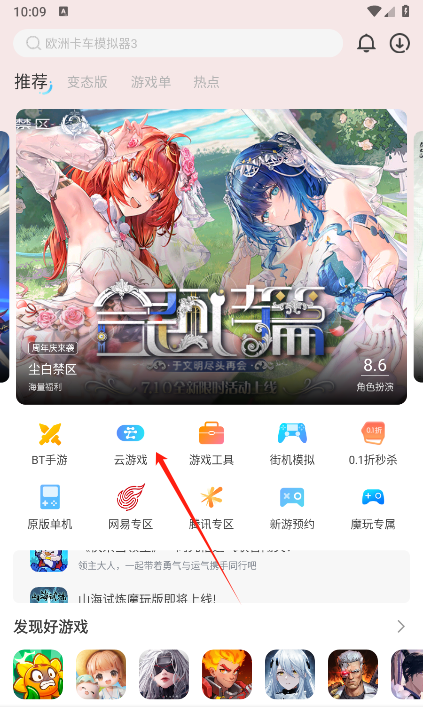 1、我们可以在首页点击云游戏版块
