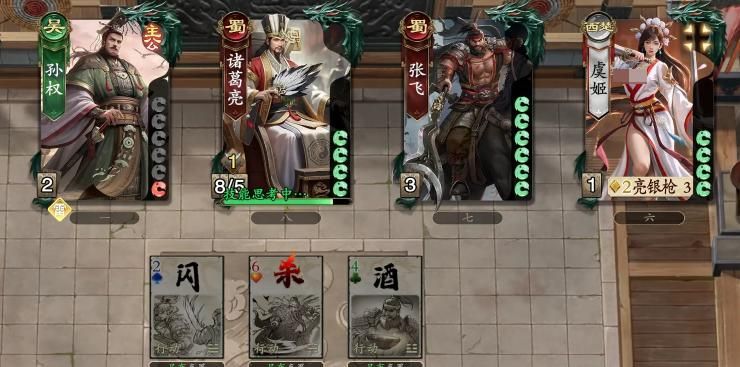 然后是“霸王”这个技能,在进行阵前对决的时候,将阵前对决的效果改为对目标造成1点伤害,每造成3次伤害,会添加1张阵前对决到手牌。这个技能的特点是修改阵前对决的结算规则,与项羽结算时,不需要双方大厨杀,而是直接对目标造成伤害。