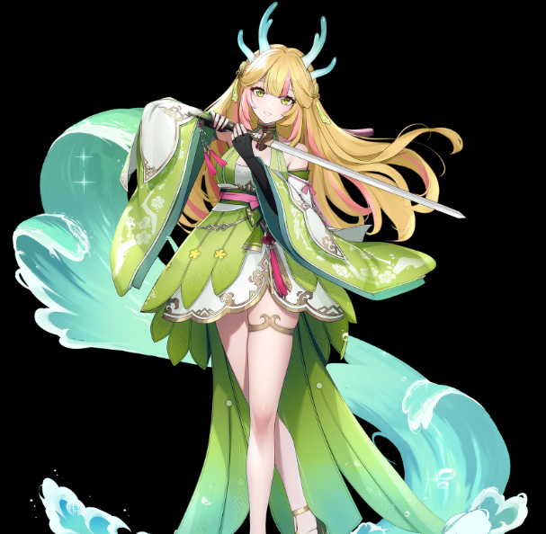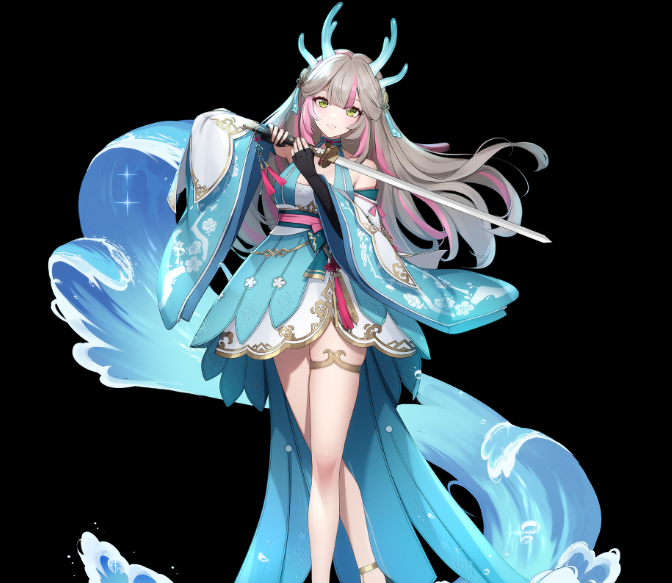 等级1:对最接近的敌人召唤龙,对目标造成攻击力280%的伤害,若持有<净流>效果,每叠加额外造成攻击力190%的伤害, 消耗所有<净流> 效果。若<净流>为3叠加以上,解除目标4个增益效果,获得<激流>与<清流>增益效果。各增益将强化<激流斩>、<清流粉碎>(等级1解锁)