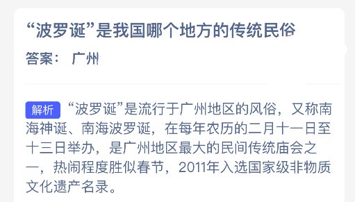 以上就是“波罗诞”是我国哪个地方的传统民俗?支付宝蚂蚁新村最新答案2025年12月21日,更多精彩内容,请点击关注更新!