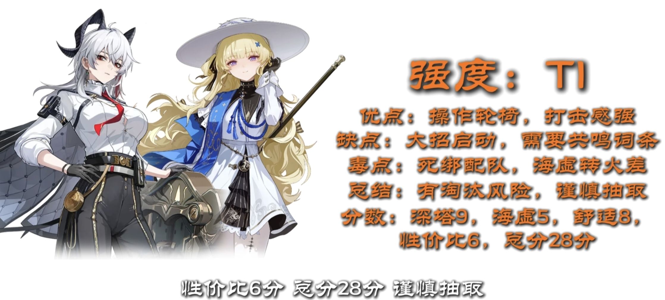 分析:卡提希娅目前强度尚可,但目前即将进入3.0的版本需2链才能发挥她的强度,主播预言一下0链的卡提希娅在3.0多半会和1.0的汐汐差不多真是一对苦命鸳鸯~希希不汐汐了