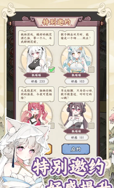11、器用等级越高,每月修为增加数值越高,同时需要与所赠送美人或狐仙的好感越高