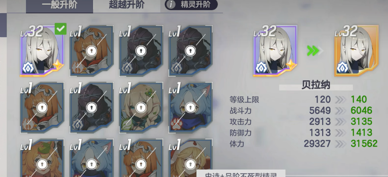 方舟系统可以给精灵进行升阶操作,最高能升到不朽阶段。阶级越高角色的等级上限就越高,而技能的额外效果往往要达到一定等级才能解锁。所以到了后期,想要让角色发挥出完整实力,基本都得升到不朽才行。当然这次测试时长有限,新手玩家暂时不用考虑那么远。