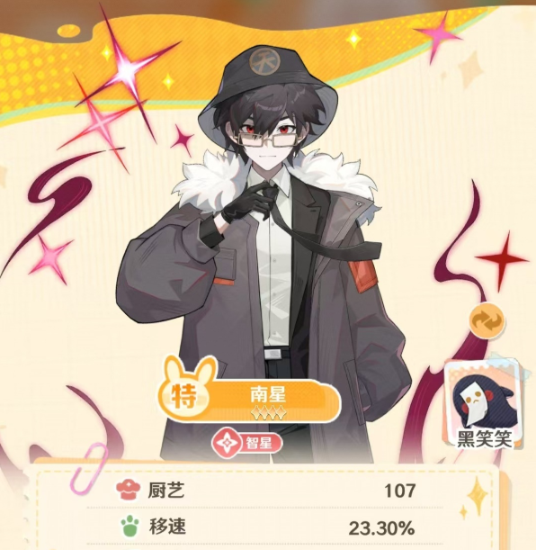 南星的核心价值主要体现在中后期的技能上。宇宙小爆发在入座率达到80%的时候触发,给自身提供高额移速和效率加成,持续时间长,在高峰期可以迅速缓解出餐压力,避免因为供应不足而造成的评分下降。同时“厨艺交响”直接给全体店员提供固定的厨艺加成,在大型活动或者高难度经营目标中效果更加明显。除此之外,该角色在超级厨王秀和商务聚会等玩法里,对智星特质店员进行的专项强化,使得他在特定的阵容中具有不可替代性。