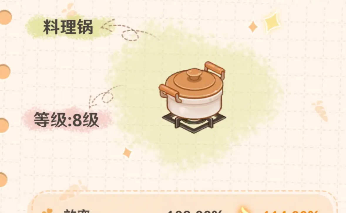 除直接提高厨艺数值外,食谱和设备系统也起着不可替代的作用。解锁炸锅、奶品精致机等研制设备,玩家会获得更多的高品质菜谱。虽然食谱升星不会直接改变厨师的厨艺数值,但是在高厨艺的支持下,高星菜品能明显提高售价和评分,从而形成良性循环。在中后期,厨艺和菜品品质之间的联动效果,会成为拉开经营收益差距的重要因素。