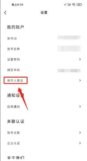 打开中免海南app后窗口,进入设置窗口,点击“收件人信息”