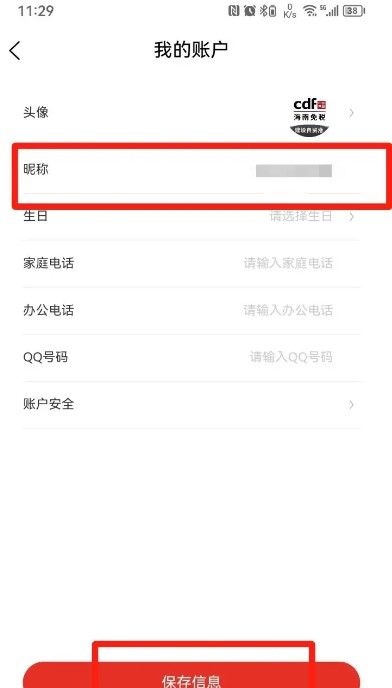 最后修改昵称,点击【保存信息】即可